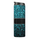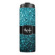 Aqua blue shiny faux glitter sparkles Monogram Thermal Tumbler