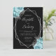 Aqua Blue Silver Floral Black Wedding Invitation