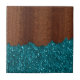 Aqua blue sparkles glitter rustic brown wood tile