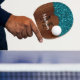 Aqua blue sparkles rustic brown wood Monogram Ping Pong Paddle