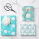 This set of 3 wrapping paper sheets is perfect for coastal holiday gift wrapping. The Christmas beach themed patterns include: sand dollar and starfish with glitter coral on aqua blue background; white sand dollars on aqua glitter background; aqua glitter coral pieces on a white background.