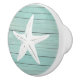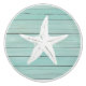 "turquoise teal blue starfish", "faux wood nautical sea animal", "light aqua ocean creature", "marina beach house decor", "marine drawer cabinet pull", "cupboard wardrobe puller knob", "pastel mint underwater life theme", "white beachhouse slats stamp", "wooden sea star seastar", "horizontal distressed pier planks"