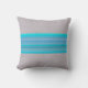 Aqua Blue Striped Pattern on Silver Grey Throw Pillow