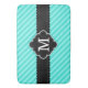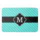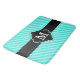 Aqua Blue Stripes Pattern Black Custom Monogram Bath Mat