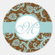 Aqua Blue sur les Autocollants Mariage damassé Bro
