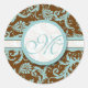 Aqua Blue sur les Autocollants Mariage damassé Bro