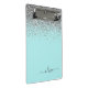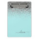 Aqua Blue - Teal and Silver Glitter Monogram Mini Clipboard