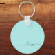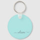 Aqua Blue Teal Modern Script Girly Monogram Name Keychain
