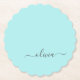Aqua Blue Teal Modern Script Girly Monogram Name Paper Coaster