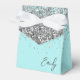 Aqua Blue Teal Silver Girly Glitter Monogram Name Favor Box