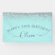 30th Birthday Party Aqua Blue - Teal and Silver Sparkle Glitter Brushed Metal Monogram Name Party Banner. This makes the perfect sweet 16 birthday, 15th, 18th, 21st, 30th, 40th, 50th, 60th, 70th, 80th, 90th, 100th party supplies for someone that loves glam luxury and chic styles.