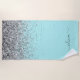 Aqua Blue Teal Silver Glitter Monogram Beach Towel