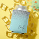 Aqua Blue Teal Silver Glitter Monogram Can Cooler