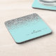 Aqua Blue Teal Silver Glitter Monogram Coaster