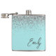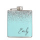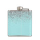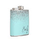 Aqua Blue Teal Silver Glitter Monogram Hip Flask