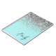 Aqua Blue Teal Silver Glitter Monogram Notebook