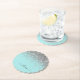 Aqua Blue Teal Silver Glitter Monogram Paper Coaster