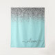Aqua Blue Teal Silver Glitter Monogram Tapestry