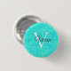 Aqua Blue Watercolor Monogram Name 1 Inch Round Button