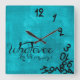 Trendy Aqua blue and black Whatever, I'm late anyway square clock. Whatever Wall Clocks with fancy chalk lettering and beautiful background.