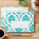 Aqua Blue White Damask Pattern Print A7 Envelope