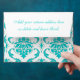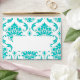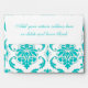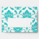 Aqua Blue White Damask Pattern Printed A7 Envelope Template. Aqua White Damask graphic design pattern makes this an elegant envelope for your special occasion. Envelope has a blank section on the front for your mailing address. Fully customizable. Personalize with your text, graphics, monogram and or photograph on the front, back and inside and outside flap of the envelope. Great for special occasions like weddings, birth announcements, graduations and everyday elegance in personal handwritten letters.