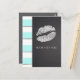 Aqua Blue & White Faux Silver Shimmer Lips Event Postcard. Matching items in my store. Add any text you want.