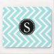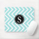 Aqua Blue & White Zigzag Pattern Black Monogram Mouse Pad