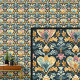 Aqua Blue Yellow Gold Art Nouveau Wallpaper