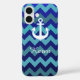 aqua blue zig-zag stripes, anchor & name Case-Mate iPhone case
