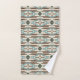 This attractive three piece towel set features a pretty southwestern aztec pattern in tones of aqua blue, brown, and tan. The large bath towel has a matching brown border at the bottom. Your monogram is in aqua on an aqua and brown lined banner. Very attractive, and personalized just for you.