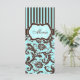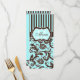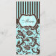 Aqua, Brown, White Striped Damask Menu Card