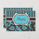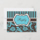 This chic and trendy turquoise blue, brown, and white stripes with floral damask reply card matches the wedding invitation shown below. The text and paper choice is customizable. If you require any additional matching items, please email niteowlstudio@gmail.com with your request.