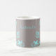 Sweet and dainty Butterfly Floral Mug with a muted dusty grey background and turquoise butterflies and floral vine embellishments. This elegant floral mug is perfect for drinking your favourite hot beverage with a dash of girly flair. Easy to customize, simply add the personalized text of your choosing in the text fields provided. Click on the "Customize It" button to find additional personalization options.