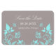 Sweet and dainty Butterfly Floral Save the Date Premium Flexi Magnet with a muted dusty grey background and turquoise butterflies and floral vine embellishments. This elegant save the date magnet is the perfect choice for announcing your upcoming wedding. Easy to customize, simply add the details of your wedding day in the text fields provided. Click on the "Customize It" button to find additional personalization options.