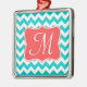 Aqua Coral moderne Chevron Zig Zag Tissu de bande Imprimer Motif Monogramme initial Ornement de Noël Personnalisé