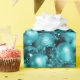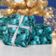 A shiny, colourful Christmas wrapping paper featuring a festive pattern of aqua Christmas tree decorations and baubles to add some glitz and glamour to your Christmas gift wrapping this holiday season.