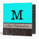 Aqua Colour Rustic Look Wood Monogram Binder