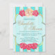 Aqua, Coral and Gold, Floral, Wedding Invitations. Teal delicate design with pretty pink and coral flowers, Designed Metro-Events. Coordinating wedding decor and supplies are available in MetroEvents shop on Zazzle.
