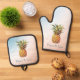 Aqua Cream Happy Tropical Pineapple Oven Mitt & Pot Holder Set