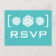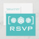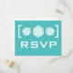 This D20 Dice Gamer Wedding Response Postcard in turquoise is perfect for the nerdy couple who fell in love over a shared interest in role playing games and are planning a similarly themed wedding. This offbeat design features a simple and minimalist trio of twenty-sided die. Easy to customize, simply add the details of your wedding in the text fields provided. Click "Customize It" to find more personalization options.