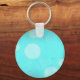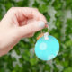 Painting of circles and bubbles that appear to be floating on a light blue green background, that looks cool and light, is printed on keychains. Can customize the key chain with your own text.