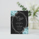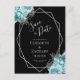 Aqua Floral Silver Geo Frame Black Save the Date Postcard