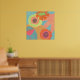 Flowers on aqua in orange, yellow and tangerine. This pop modern poster is good for residential and commercial spaces.