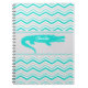 It's easy to personalize this colourful chevron stripe and aqua blue gator notebook with a name before ordering! Features aqua, white, and grey chevron stripes with an aqua blue alligator and an area you can easily customize with a name!