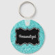 Pretty aqua cyan photo glitter printed photo effect. These sparkles are from a photo, and not actual glitter specks. Glam. Glamorous. Glitz. Girly. Gift for her. Personalized black and white decorative frame in the center. However, you could easily create a monogram by customizing the text. Change or add the text font style, size or color.
