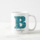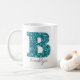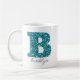 An aqua sparkly abstract polkadot pattern monogram letter B with your name underneath in a grey script.