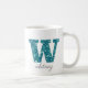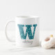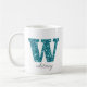 An aqua sparkly abstract polkadot pattern monogram letter W with your name underneath in a grey script.