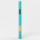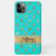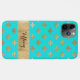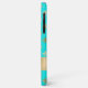 This stylish aqua blue and gold Case-Mate Barely There iPhone 11 Case has a fleur-de-lis pattern in gold that is sure to be a standout! The case has a wide gold band across the bottom that is personalized with a name or other text.