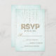 Aqua & Gold Glitter Look Wedding RSVP Card